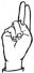 На ћирилици написано ДРИНКА ТРАПИЋ састоји се из 12 слова [?]. Исписано ћириличном једноручном азбуком за глувонеме: